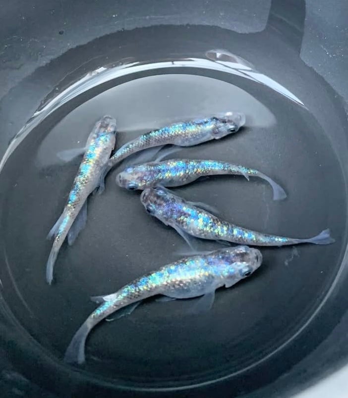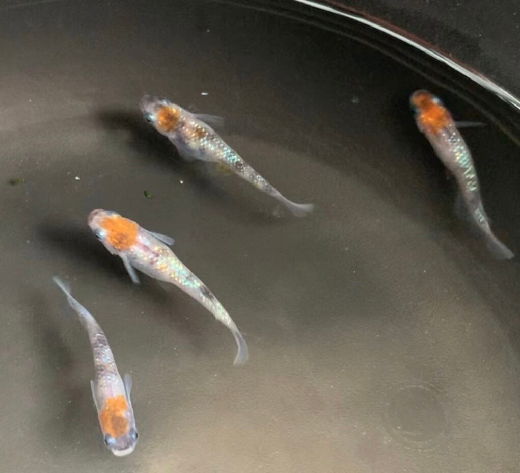 親メダカは写真の三色ラメと白ブチサファイアです!